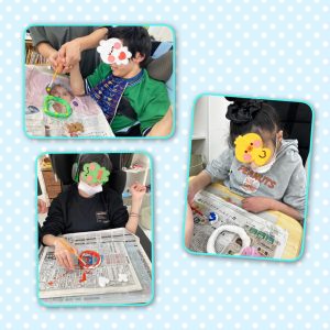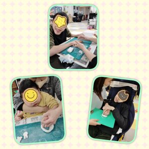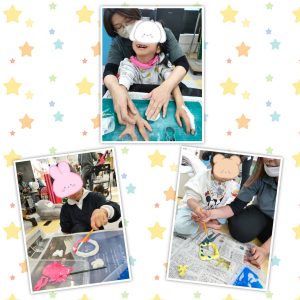 紙粘土の感触や粘土が手に付く感じを嫌がる子がいたり、癖になりにぎにぎと握る子がいたりと、それぞれ反応が違い面白かったです。