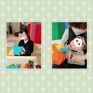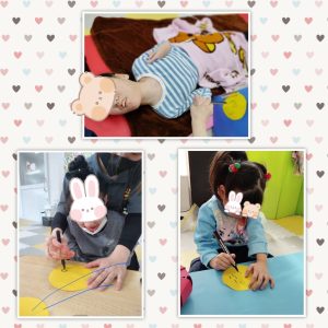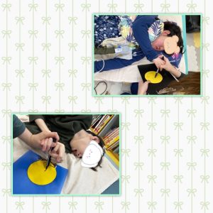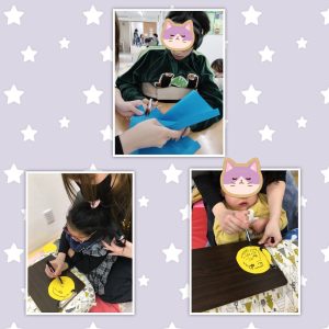 ハサミでチョキチョキ画用紙をきり✂️鬼のツノながらをマジックで描いたり、お花紙をクシャクシャ丸めてお飾りをつけました🍀